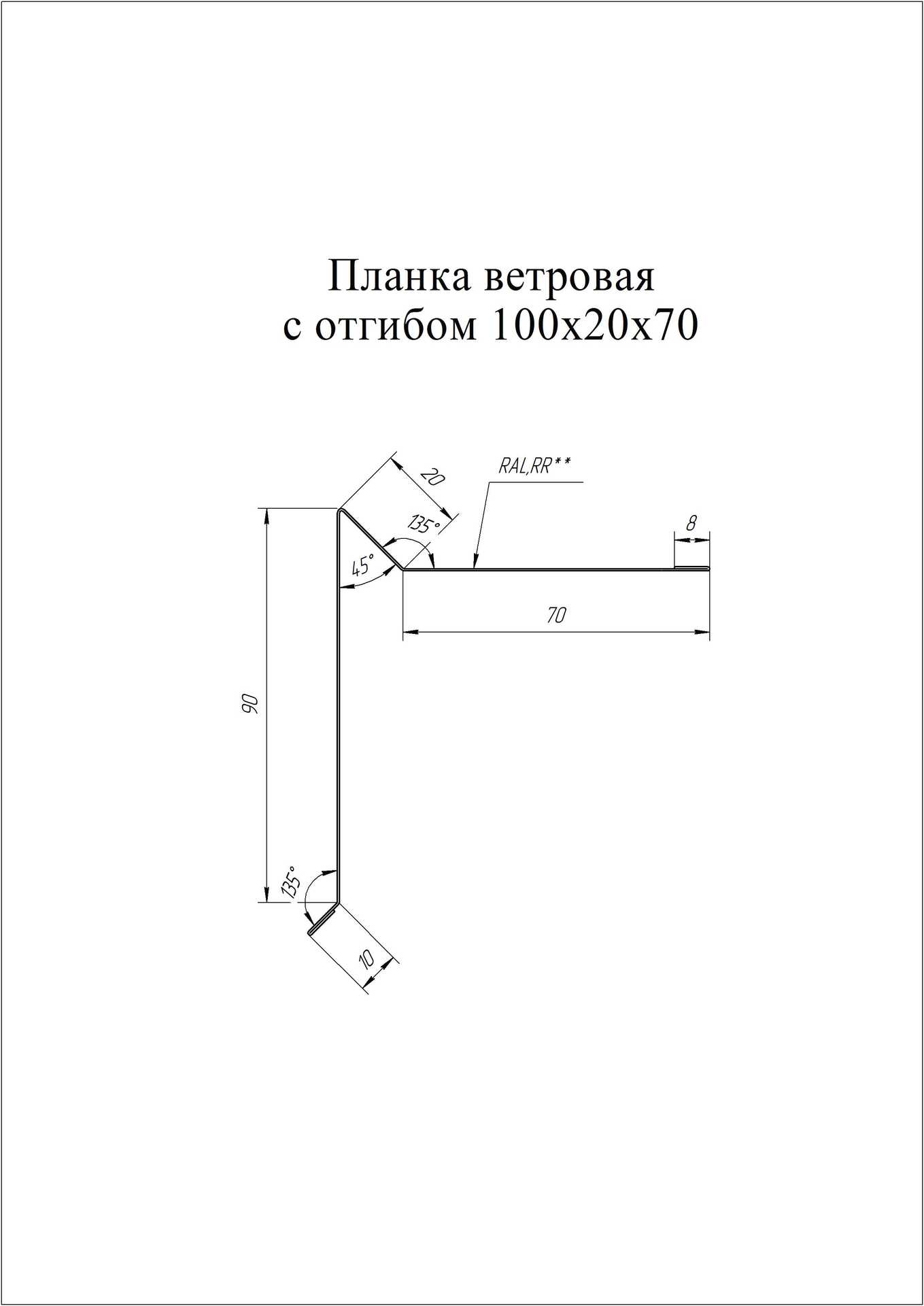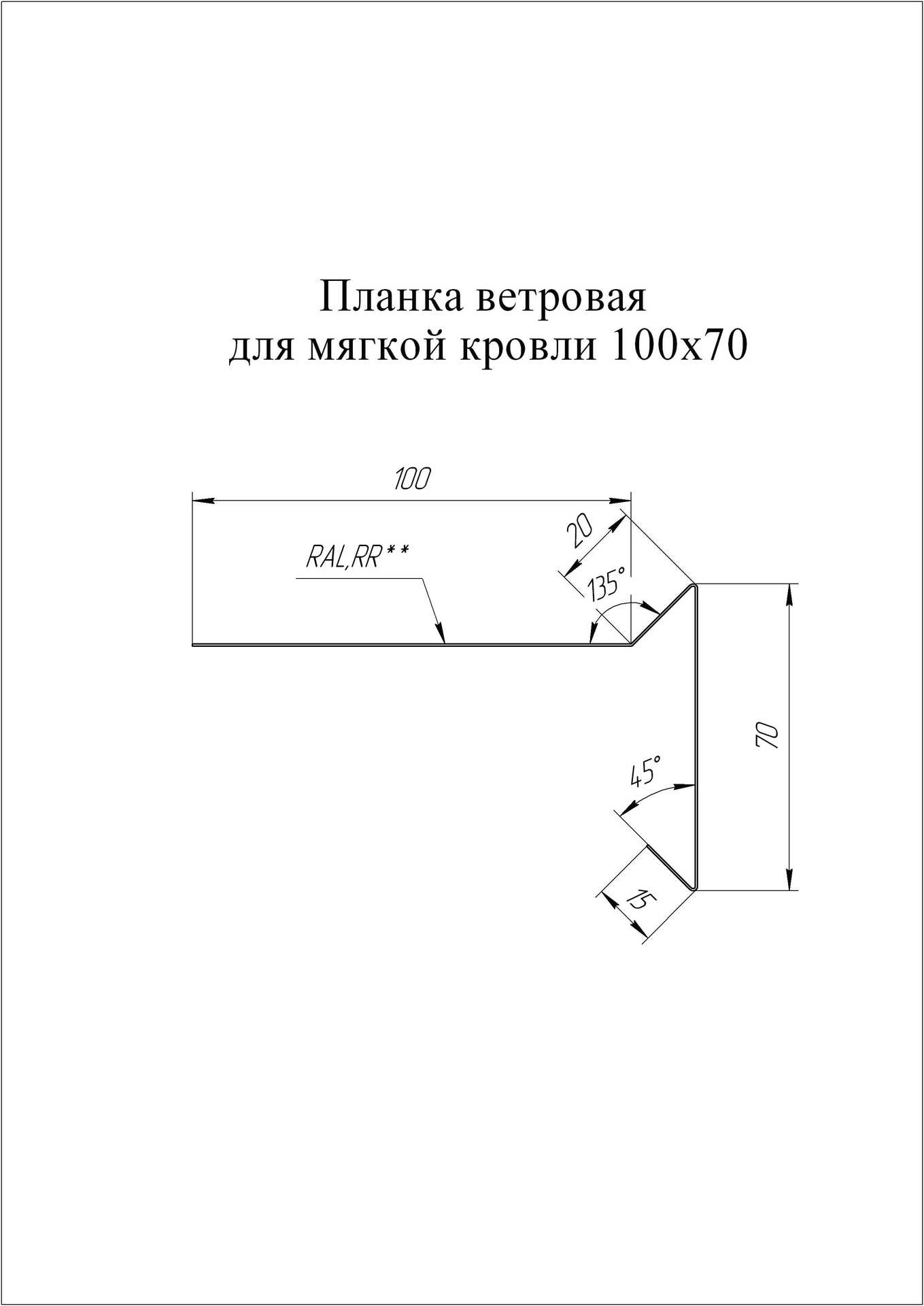 Планка ветровая для мягкой кровли 100х20х70 0,45 Drap ST RAL 7024 мокрый асфальт