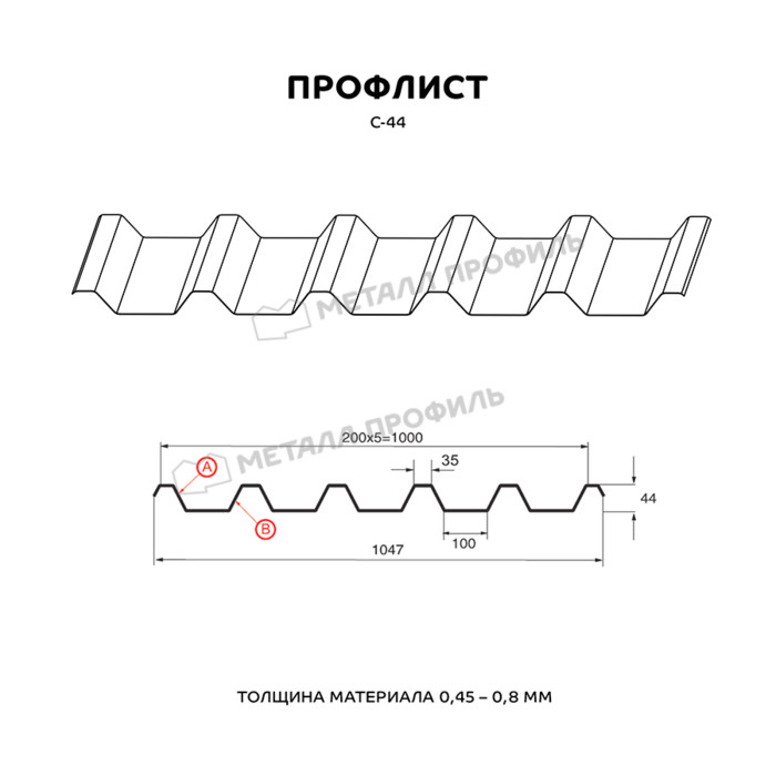 Профлист Металл-Профиль С-44 Полиэстер 0.45 мм RAL 9006 Белый алюминий